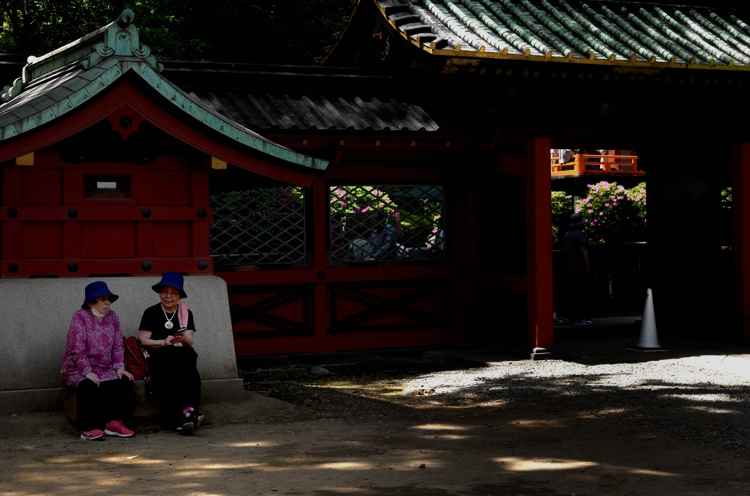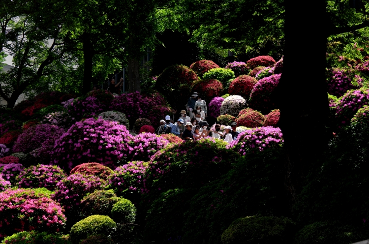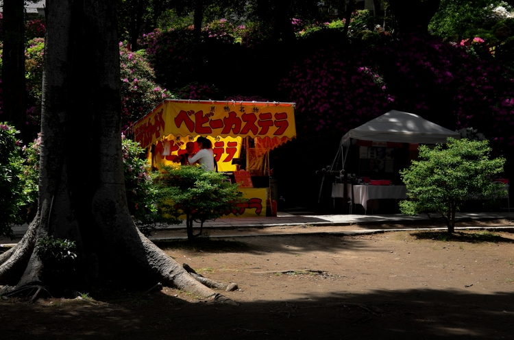 根津神社。 投稿日: 2023/04/23 投稿者: 写真家 丸林正則 東京文京区の「根津神社」はつつじの名所で、ちょうど今頃は賑わっている事だろうと思い出掛けてみました。着いてみると境内は屋台が所狭しと並んで大賑わいでした。やはり何処へ行っても外国人観光客でいっぱいです。今日は光を効果的に活かしたシーンばかりを意識して写しました。 「根津神社」へ向かう途中の「谷中」で撮影。強い真上からの光を活かして。 「根津神社」境内にて。 つつじの山にスポットライトが射していました。 まだら状態の光が射していました。 屋台にも後ろからの光が射し込んでいました。