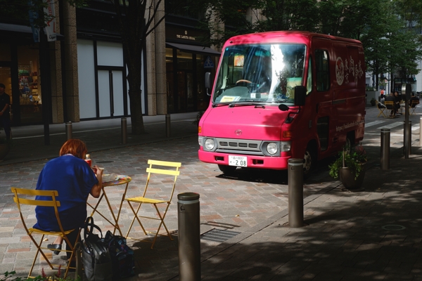 有楽町。 投稿日: 2025/10/01 投稿者: 写真家 丸林正則 昨30日は「有楽町」方面でカメラ散歩をして来ました。スナップの分野だけではなく、写真は出会いですから家に籠っていたのでは良い瞬間を目にすることは出来ません。と言う訳で足腰の痛みに耐えながらその良い被写体との巡り会いのチャンスが多い所を目指したのです。 ランチタイムも終わり閑散としている「丸の内仲通り」です。 ビルとビルの隙間からですが、何となくオシャレ! あの「ルイビトン」のビルです。 何か動物の群れに似ています。 ランチタイムに向けて準備中です。