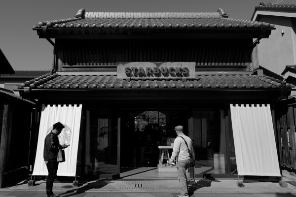 光と影。川越にて。 投稿日: 2025/10/23 投稿者: 写真家 丸林正則 昭和29年(1927)に建築された「旧武州銀行川越支店」。ギリシャ神殿で使われたドリス式列柱が特徴の風格ある建物。 「熊野神社」参道の提灯。 「スターバックスコーヒー」の店頭。 「喜多院」境内の竹林。 「熊野神社」にて。静寂が伝わって来ます?